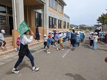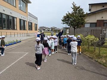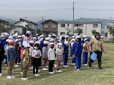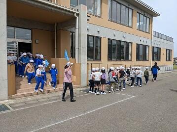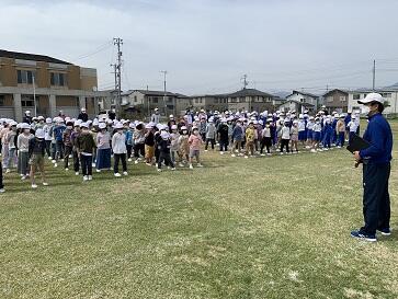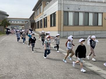 2022年4月26日 10時28分4月26日(火) 今日は、学級閉鎖や悪天候で延期になっていた第1回避難訓練を実施しました。ねらいは、新しい学年になってからの避難経路と避難場所での整列の確認です。近隣住宅の火災を想定して緊急避難の訓練でした。教頭先生の避難開始の放送から3分以内に全員校舎を出ることができました。無言で安全に避難できる子が多かったです。