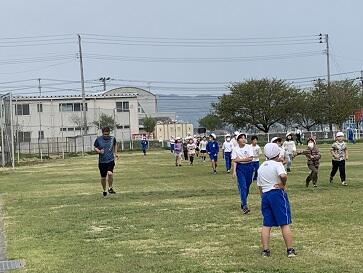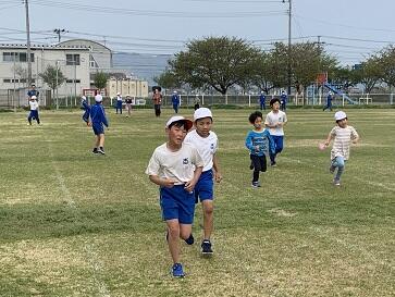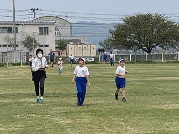 4月26日(火) 今朝は少し曇り空でしたが、子どもたちは元気よく朝のマラソンに取り組みました。
