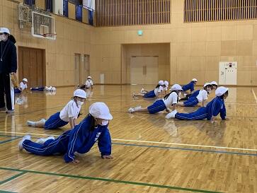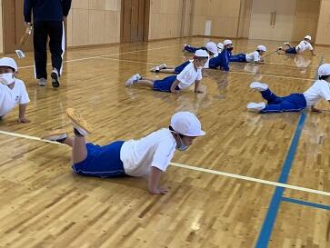 「運動身体づくりプログラム」とは、福島県教育委員会が「動ける体」と「動きたい体」つくりを目的に、毎時間の授業で活用するために作成されました。普段の生活の中ではあまり動かさない箇所や負荷の少ない箇所を動かしたり、リズム感覚を養ったりする運動があります。子どもたちは楽しく取り組む中で、体力つくりと動きづくりが融合され、「動ける体」が育成されます。また、やればできるという実感も得られます。