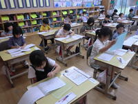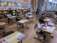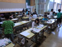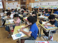 2023年6月22日 10時14分2時間目の授業の様子です。1年生は算数。問題に一生懸命に取り組んでいました。2年生も算数。テスト、プリント頑張っています。3年生は図画工作。作品づくりの計画を立てていました。きらら学級は算数。一生懸命に考えています。4年生は書写。ていねいに書いています。5年生は体育。水泳学習、頑張っています。6の1は算数。比の性質を使って問題を解いています。6の2は外国語。英語で話しているところをタブレットで撮影していました。「チーム本郷」木曜日も学習を真剣に頑張っていきます!!