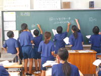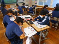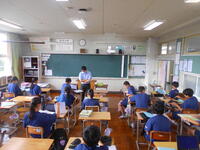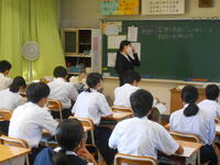 2年1組道徳では、教育実習生の舟田先生が授業を行いました。道徳の教科書の「ハイタッチがくれたもの」を読んで、「よりよい学校生活を送るにはどうしたらよいか」をみんなで考えました。班ごとに話し合いを行い、活発な意見交換によって、考えが深まりました。