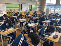 今日は、第2回目の英語学習コンテストです。どのクラスもテスト直前まで、学習プリントに精一杯学習に向き合っていました。