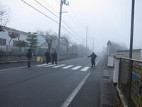 中学生の登校時刻に合わせるように次第に霧が濃くなってきました。生徒達の姿もかすんで見えます。特設陸上部の皆さんは、いつもどおり体育館で練習に取り組んでいました。最後までがんばろうとする姿もとても素晴らしく感じます。