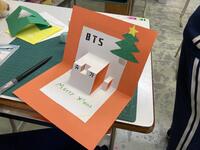 1年の美術は、カード作りの続きです。立体的な飾りをつけたりとアイディアを凝らした楽しいカードが次々と完成しました。休み前に持ち帰る予定です。ご家庭で是非飾っていただければと思います。