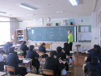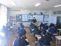 2年の社会の授業を参観しました。中部地方の工業についての内容です。教科書をもとに、北陸の伝統産業や原子力発電所など、その特色について、生徒の皆さんに問いかけをしながら説明していました。よく話しを聴きながら学習に取り組んでいます。