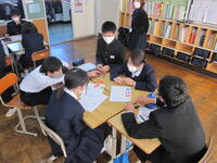 技術の授業も参観しました。木製品の構想図をもとに、「等角図」に表していました。教師が具体的に説明しながら等角図に表し、各自、取り組んでいました。2時間続きの授業でしたので、自力で正しくきれいに完成した生徒も多く感心しました。