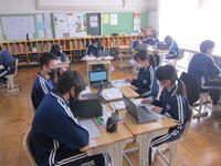 2年の英語は、「Writing Contest」に向けた学習に取り組んでいました。手作りのワークシートとタブレットを事前に準備し、それをもとに学習に取り組んでいました。また、英語の学習ソフトを活用し、達成度を確認しながらの学習にも取り組んでいました。大変意欲的です。