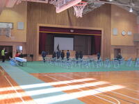 明日は、統合50周年記念式・記念講演会となりました。3年生は式場作成に進んで取り組み立派な式場が完成しました。また、清掃の時間は、玄関や外掃除の生徒の皆さんも明日に備えてがんばっていました。