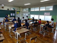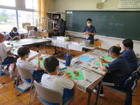 一方の「おもてなしの文化を世界に紹介しよう」では、風呂敷の紹介や風呂敷での包み方(箱、ボール、ペットボトル)などについて英語で学習していました。
