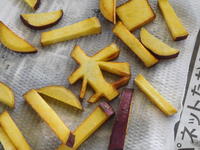 はくほう1組は,調理室で実習をしていました。夏に校庭で育てたサツマイモを材料にした揚げ物です。揚げたてに塩をふったものをいただきました。美味! ユニークな形に切ったサツマイモもありました。
