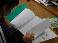3年1組は英語で,あみだくじのようなワークシートに取り組んでいました。説明文にあてはまる動物のイラストを見つけるようです。友達と相談したり,教師に確認してもらっていました。様々な教材で英語への興味を高めながら,学力を身に付けてほしいものです。