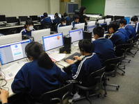 3年2組は理科で,星座や天体の運動について学習していました。昼間は実際に星座は見えないので,資料を見ながら考えることになりますが,電子黒板は資料提示には有効なようです。オリオン座を書いたり,教室内で方位を確認したりしていました。