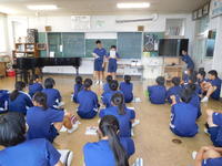 3年2組は保健体育で,体育館でベールボール型球技を行っていました。ソフトボールのようなゲームですがバットやグローブは使いません。ピッチャーがボールを投げますが,素手で打って,素手て捕球します。コツをつかむと楽しく取り組むことができるようです。
