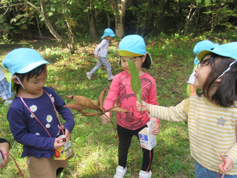 りす組(3歳児)は吹上公園にぱんだ組(4歳児)きりん組(5歳児)はトトロの森へ、
